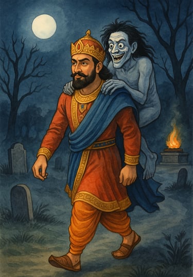 రాజు విక్రమార్కుడు తన భుజాన బేటాళుణ్ణి మోసుకుంటూ శ్మశానవాటిక నుంచి తిరిగి వస్తున్నాడు. మార్గమధ్యంలో బేటాళుడు ఎప్పటిలాగే నవ్వుతూ మరో కథ మొదలుపెట్టాడు.